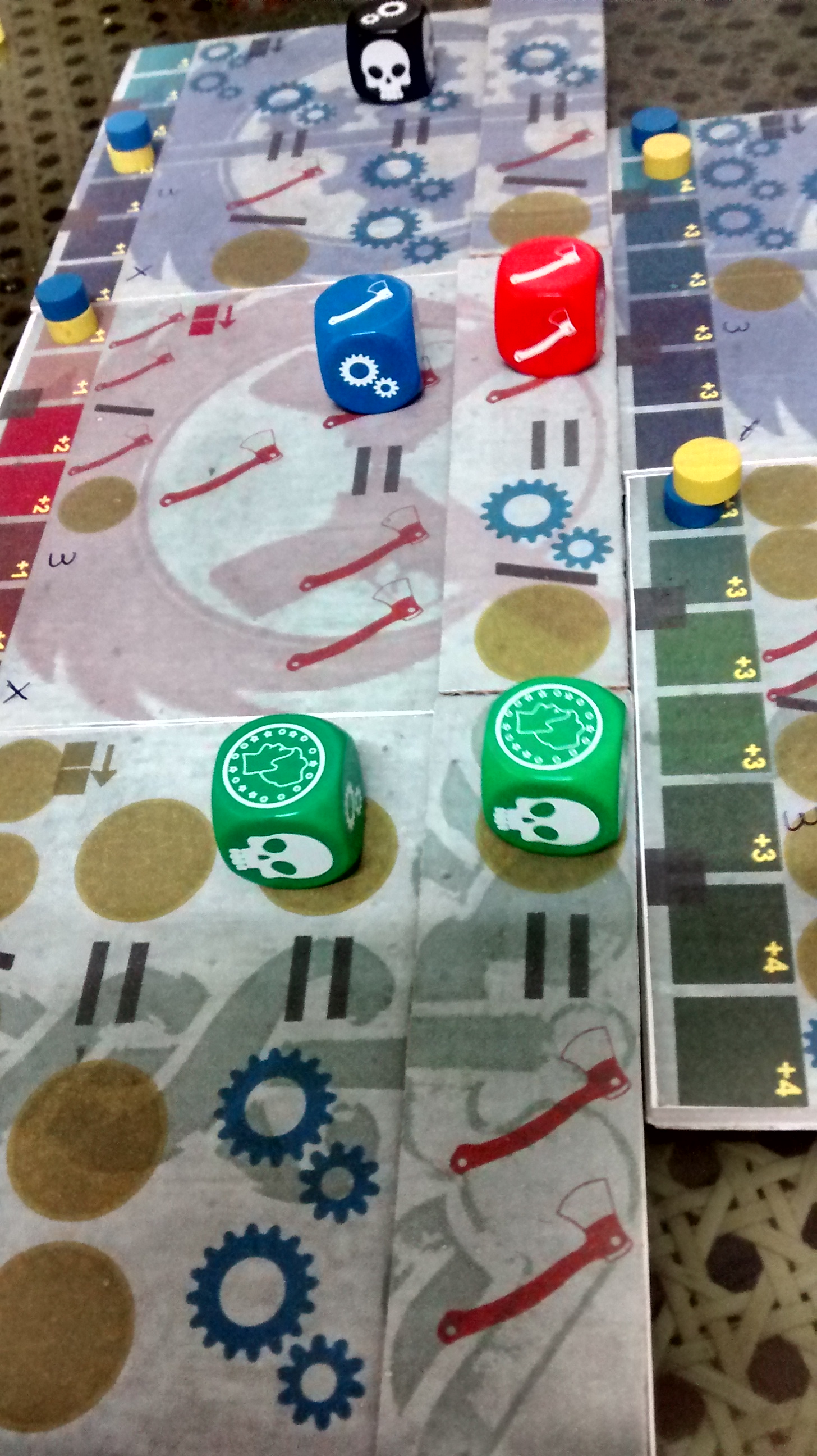 Sólo con las cartas el juego se quedaba corto. Y, de repente, de otro proto con el que no sabía qué hacer surgió la idea de los dados, que vino a cambiarlo todo. Cada cambio supone mil ajustes, mil detalles que tener en cuenta, mil caminos que se abren. Y nunca sabes del todo si es el camino bueno.